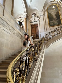 Kenzie posing on a completely empty staircase at the Louvre