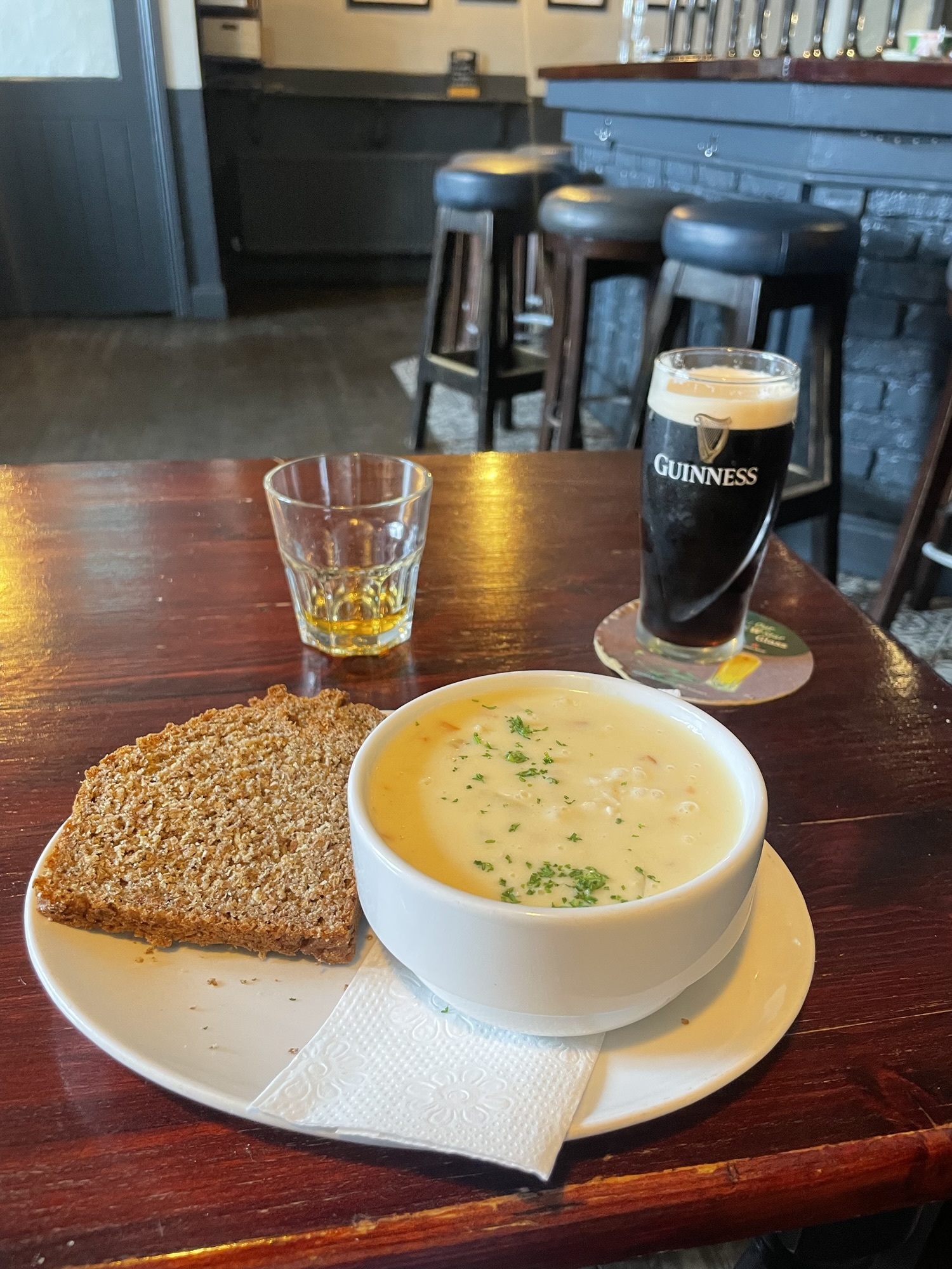 Guinness, Powers, Irish soda bread, seafood chowder